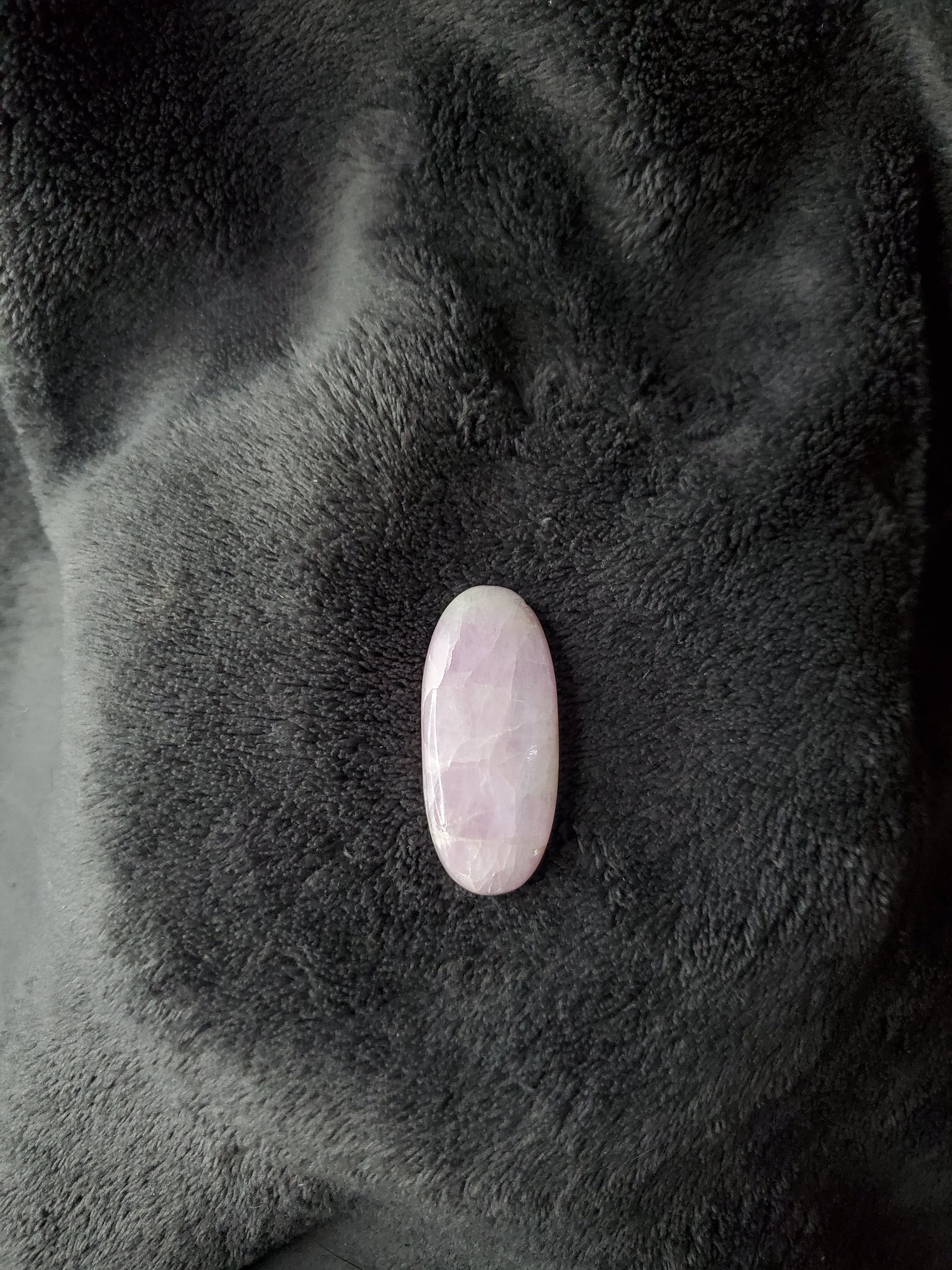 Ce cabochon possède une petite touche de la variété verte de Spodumène, l'Hiddenite. Cela en fait une pièce particulièrement originale qui présente également un bel effet Schiller.