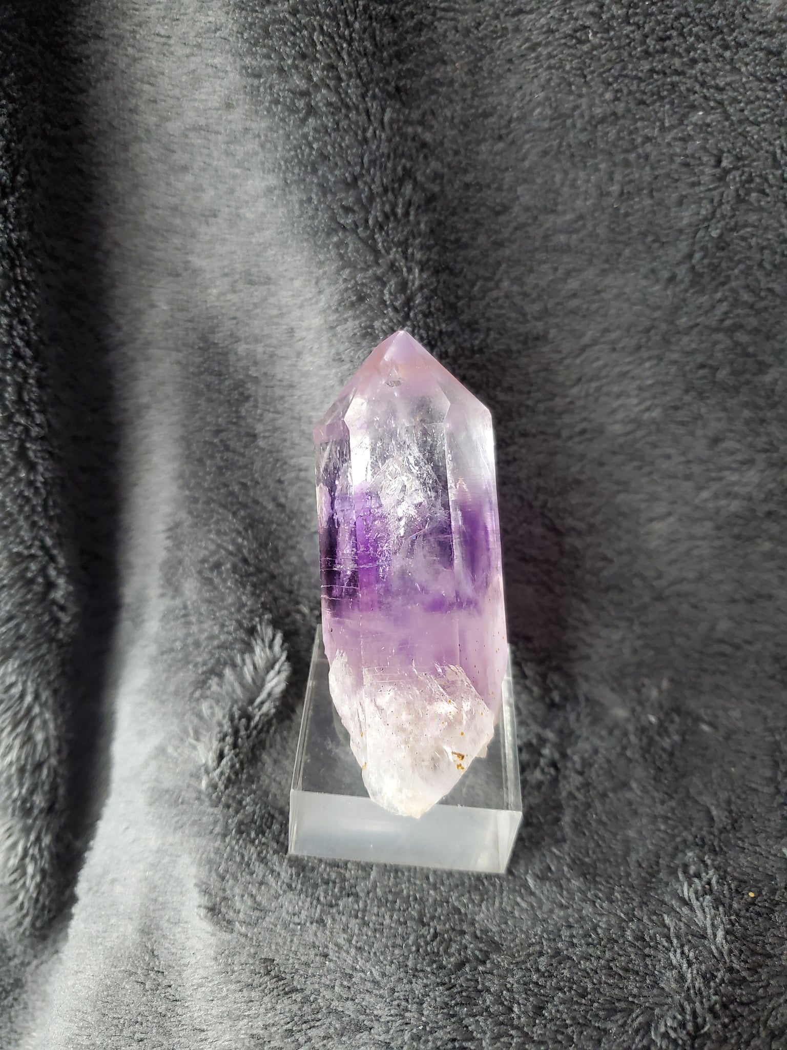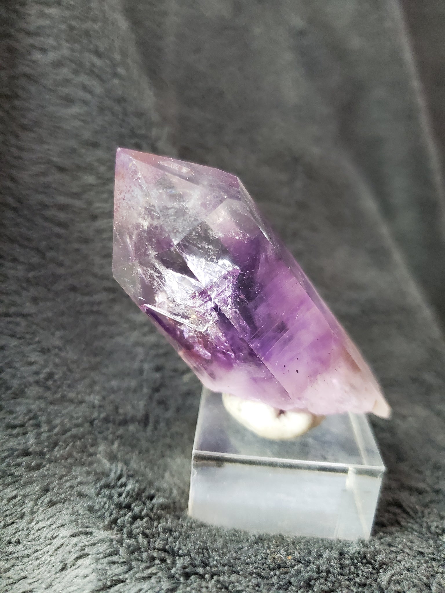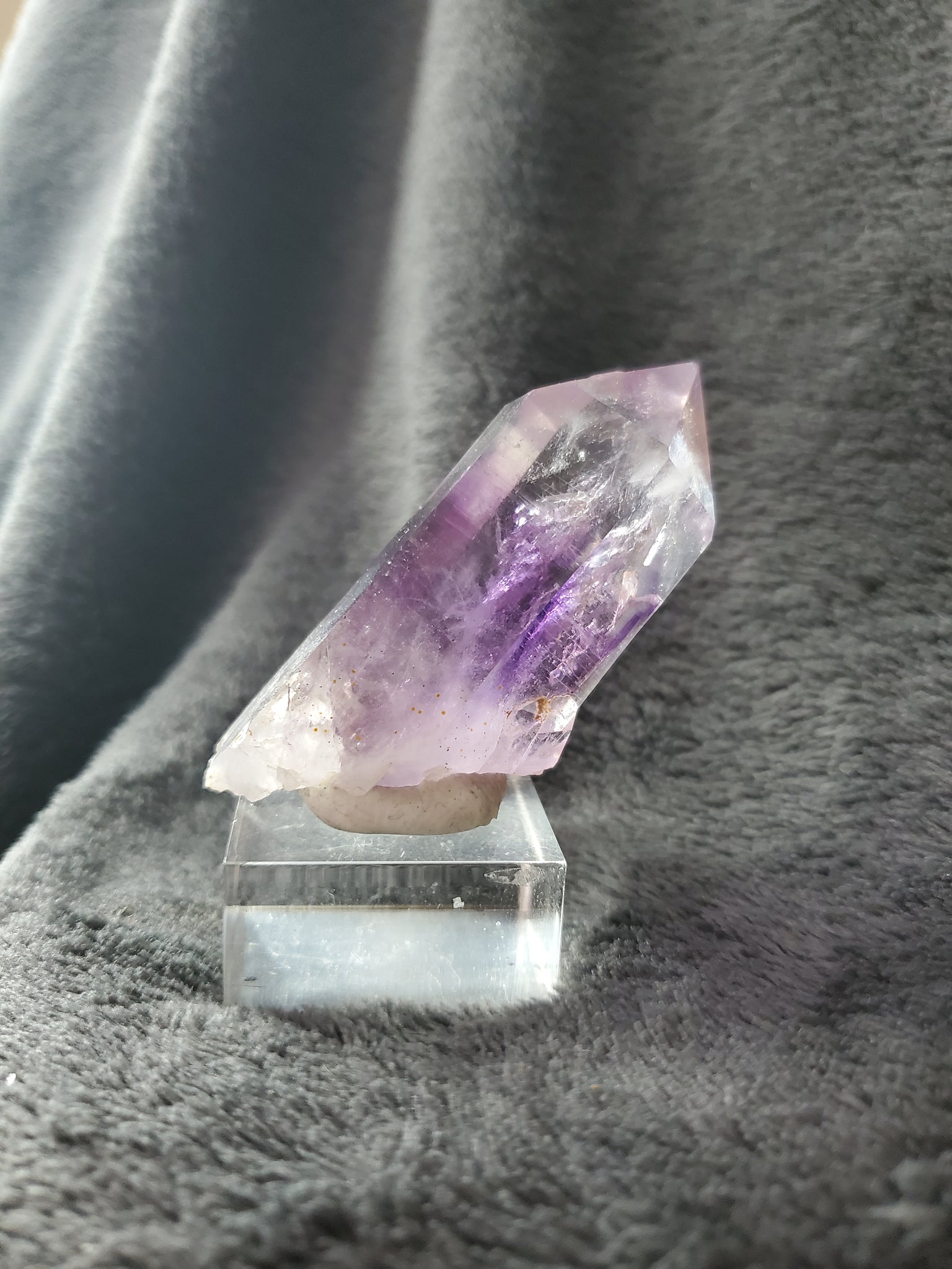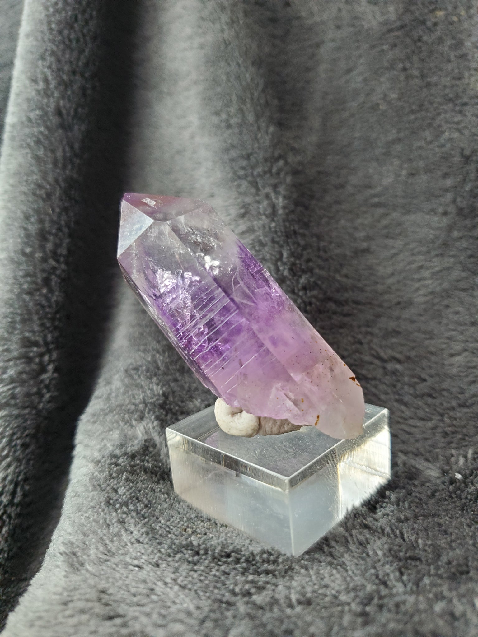 Cette pièce Namibienne, de Goboboseb plus précisément (ma provenance préférée pour les Améthystes), est d'une très belle taille ainsi que d'une magnifique limpidité. La couleur est délicatement zonée et le cristal très bien extrait.