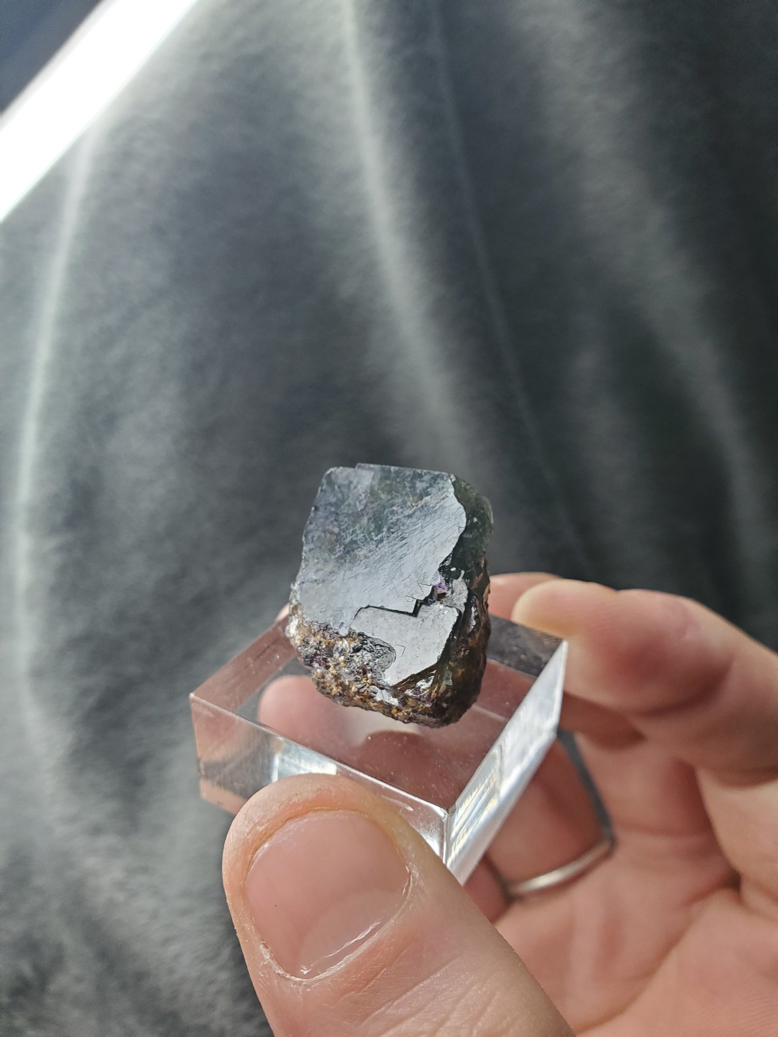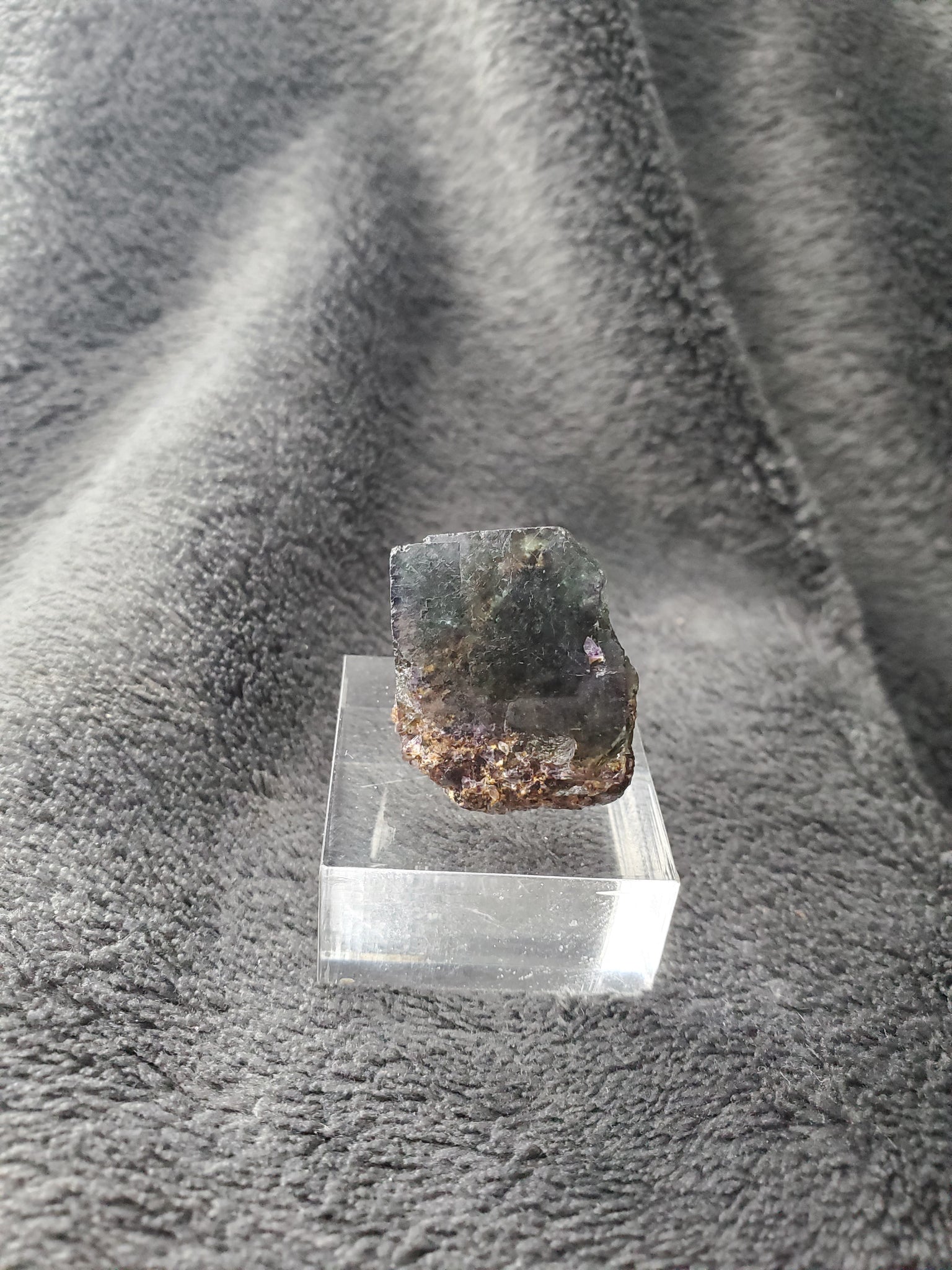Les Fluorites de Namibie sont prisées pour leurs intensité de couleurs, celle-ci possède un mélange vert/violet très nuancé avec quelques inclusions qui créent un paysage unique.