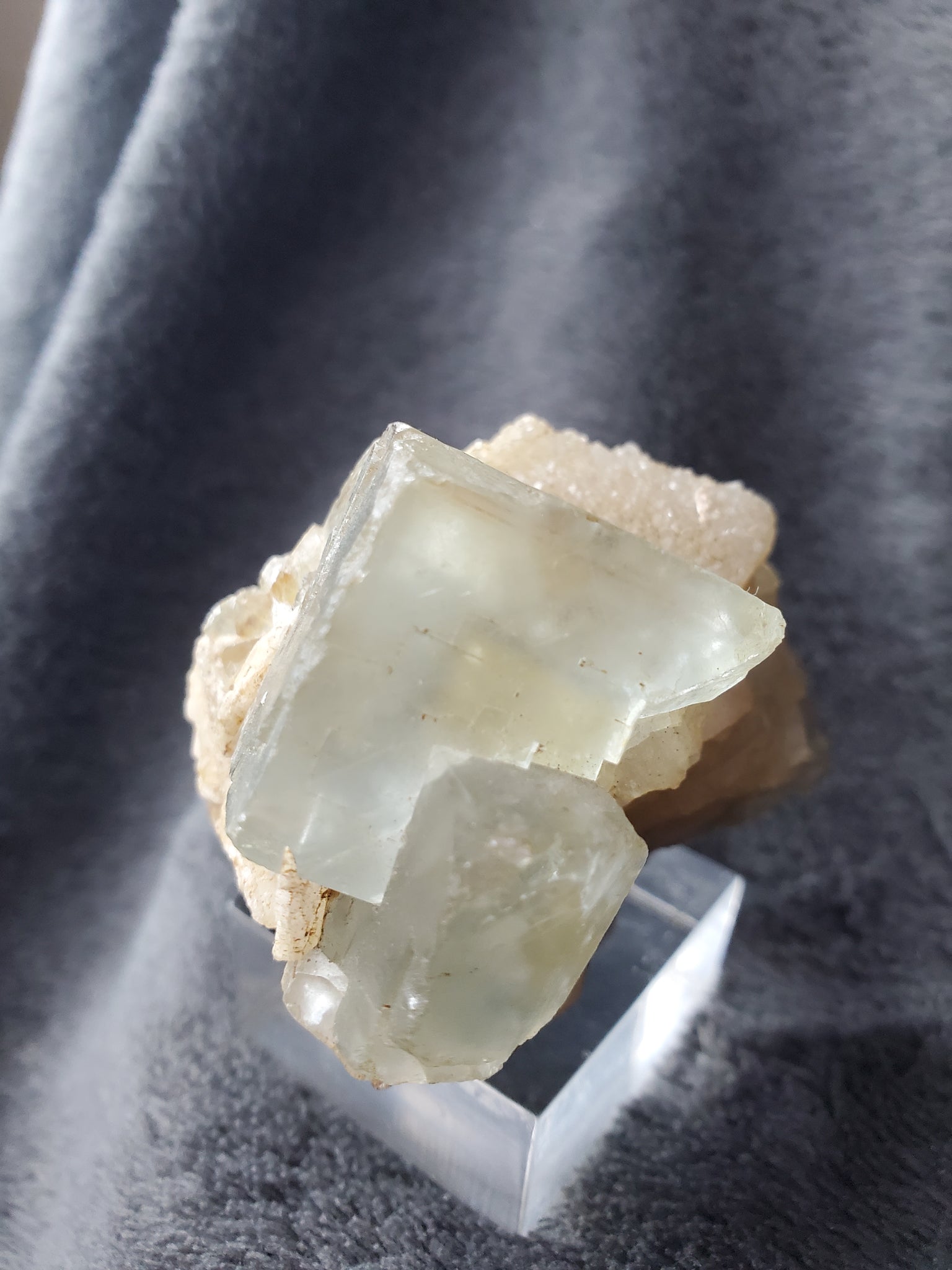 Cette pièce sur laquelle on retrouve également un peu de Baryte mais aussi un soupçon de Quartz est légèrement zonée bleu/jaune, même si les nuances sont subtile cela reste un grand classique de la minéralogie Française.