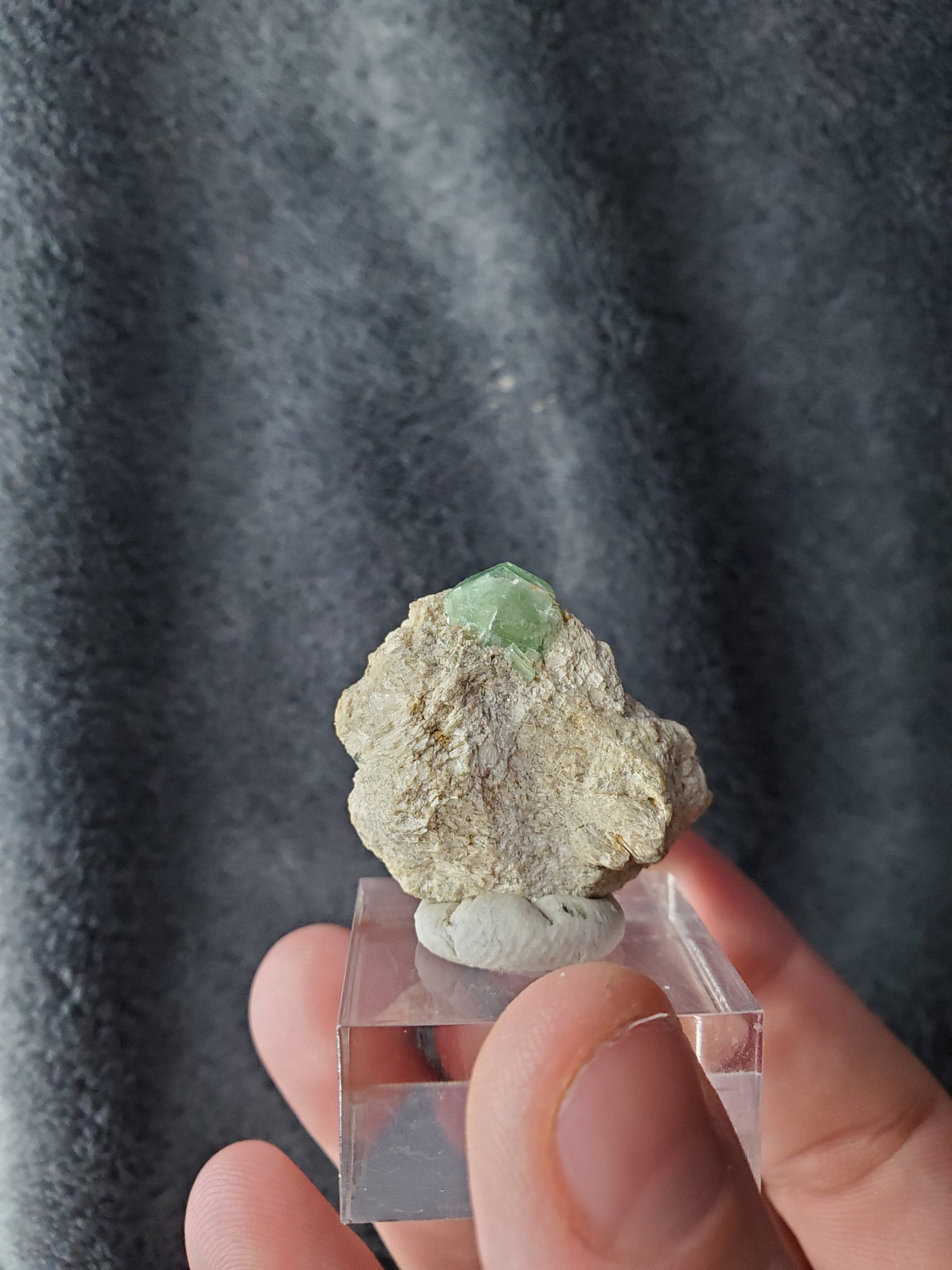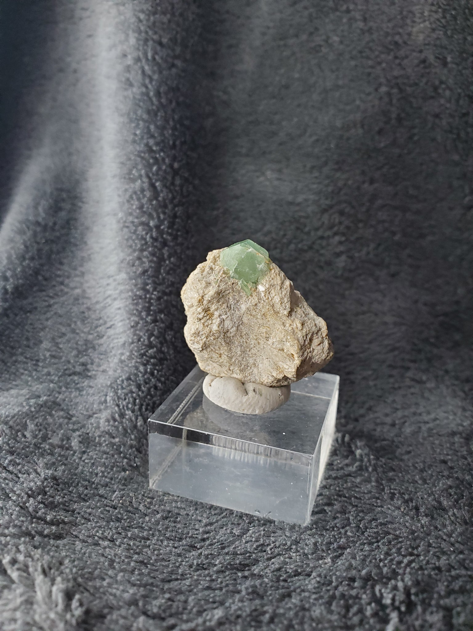 Ce petit Grenat Andradite du Pakistan présente un joli cristal vert fièrement perché sur sa matrice.