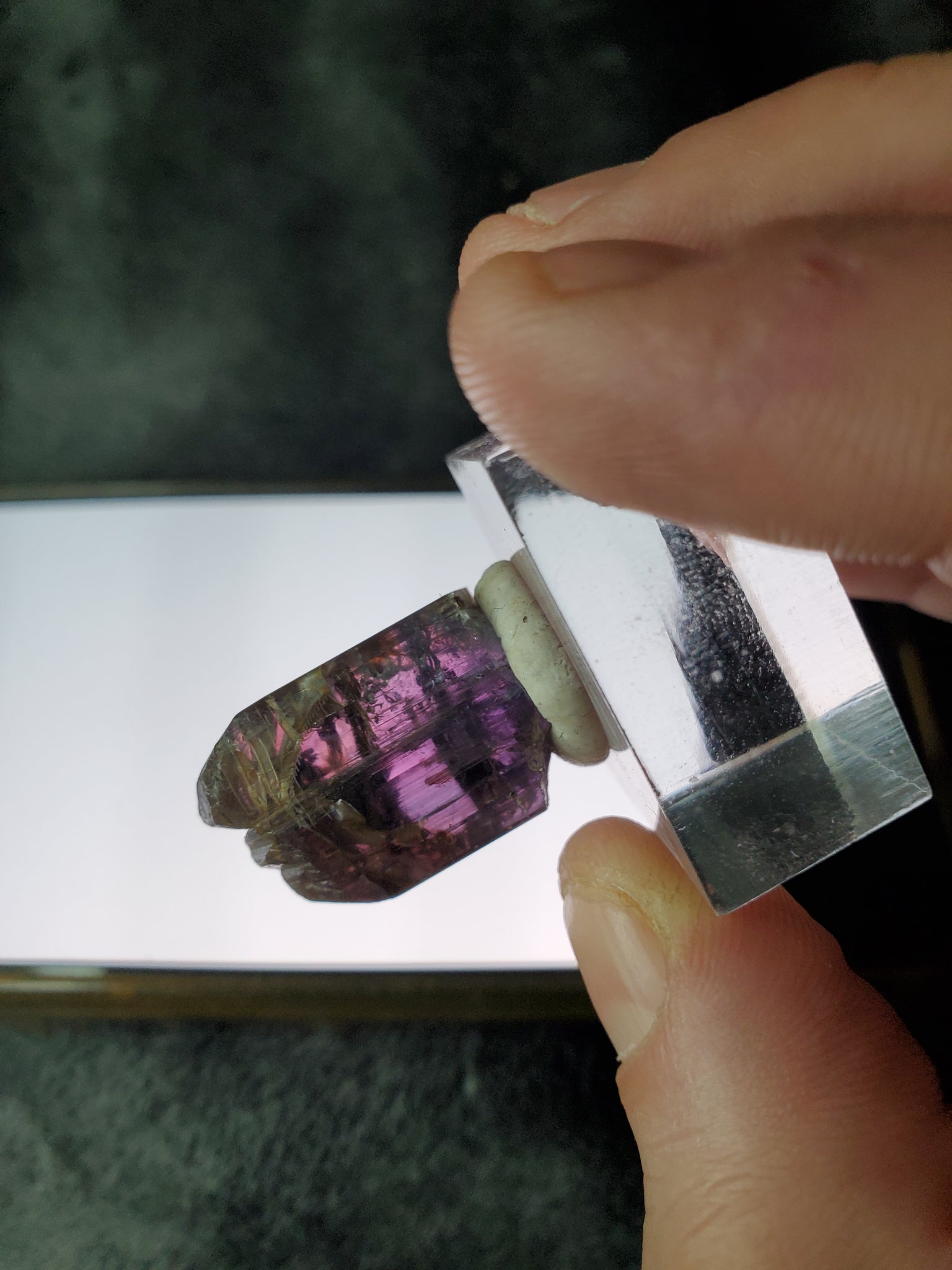 Ce minéral est particulièrement apprécié pour son pléochroïsme face à une lumière polarisée. Elle change de couleur en fonction de l'axe présenté en passant du bleu au violet, orange, jaune, rose et parfois même vert ou rouge.